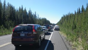 Queuing to get into Crater Lake National Park, I think we had to wait 20-30 minutes to get to the head of the line.