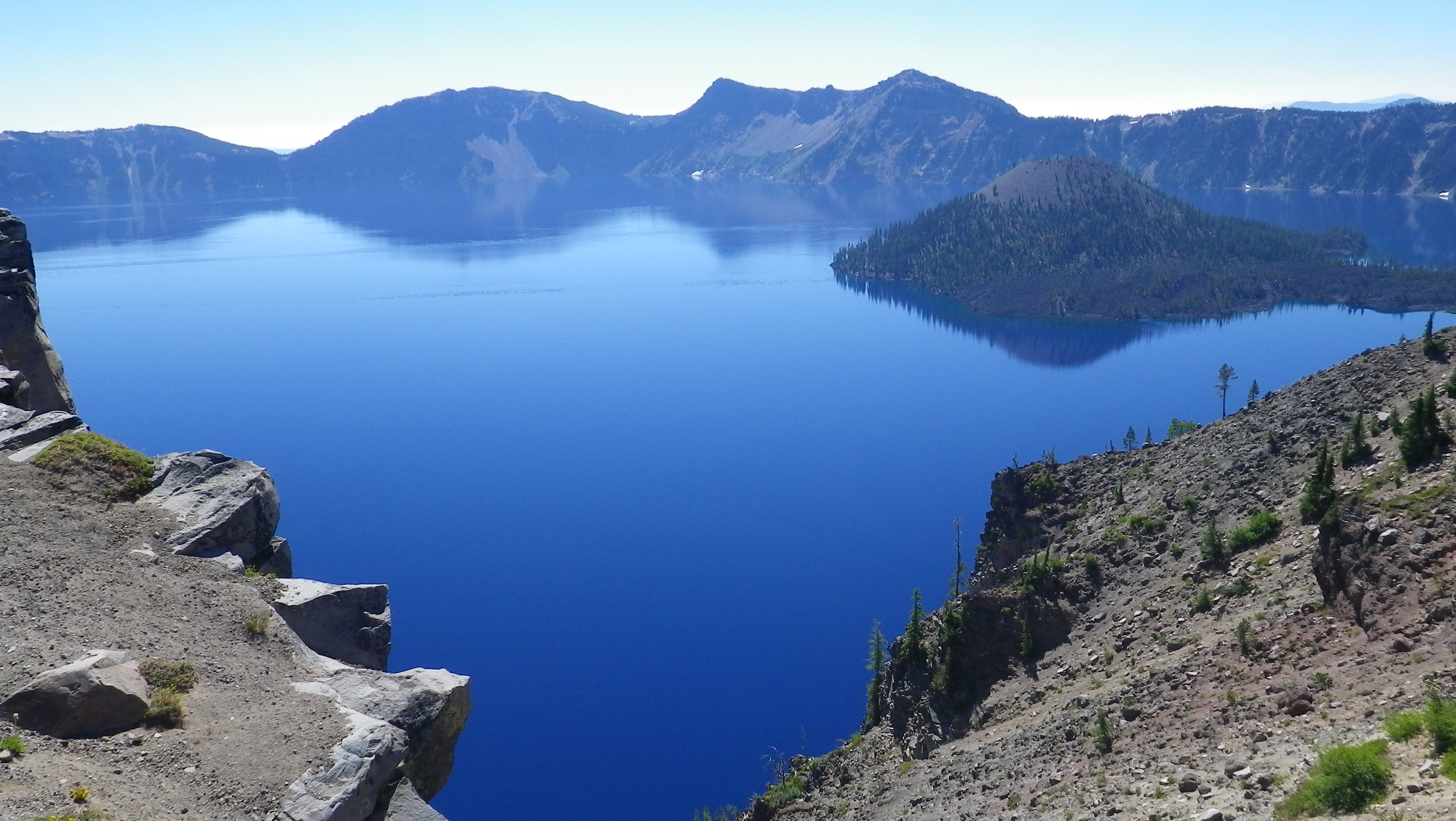 Crater Lake – the result of a massive eruption 7,700 years ago which left a basin where a peak used to be. Rain and snow filled the basin and the water is exceptionally clear.