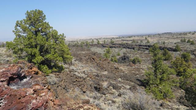 Suitably restored by showers, foot-scrubs, roasted potatoes and sleeping in a decent-sized bed we carried on south through the Tule Lake National Wildlife Refuge, which was very dry although when there was water there were thousands of birds, to Lava Beds National Monument in Northern California. You might think that would have had enough lava by now but we were finding it all fascinating and loved the wide vistas that these sparsely vegetated areas gave us. Lava Beds are part of the Medicine Lake Volcano which over a million years has created endless miles of volcanic stuff. The last eruption was 1,100 years ago but it is now considered dormant.